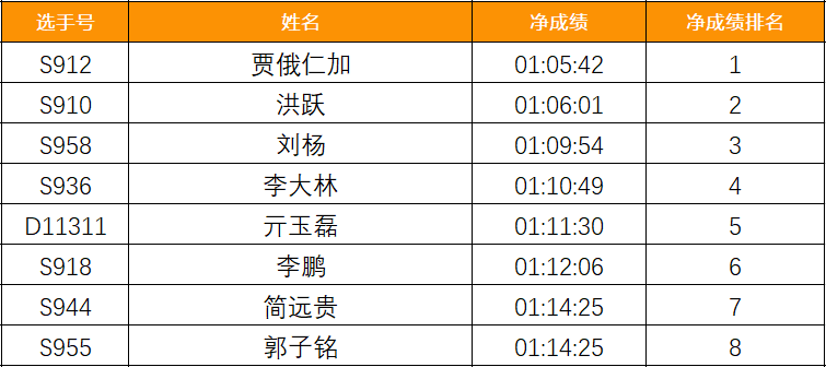 半程馬拉松-成績公示(1~8) -男子組