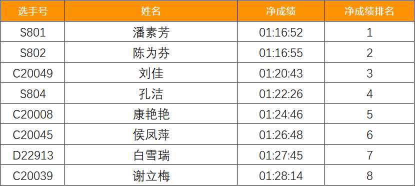 半程馬拉松-成績公示(1~8)-女子組