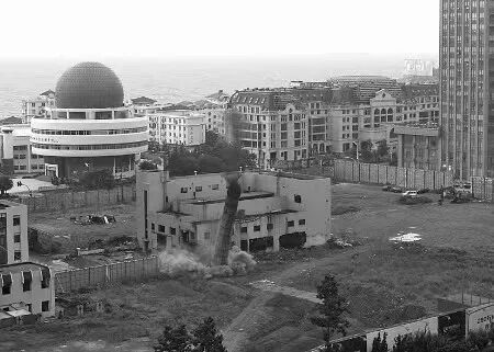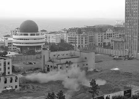 2006年,原本聳立在原青島開發(fā)區(qū)熱電燃氣總公司高達153米的紅白相間的大煙囪按預定計劃順勢向南倒去,一團煙霧騰空而起,數(shù)分鐘后煙霧消散,臨近建筑完好無損,當時中國乃至亞洲最高的建筑爆破宣告成功。該大煙囪始建于1993年,其爆破拆除從高度到壁厚當時在全國乃至亞洲都堪稱第一。