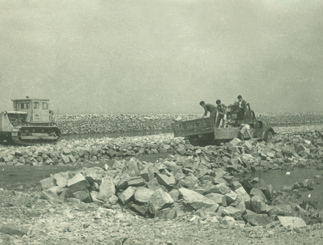 1985年3月25日,煤制氣一期工程在膠州灣李村河口填海建設。