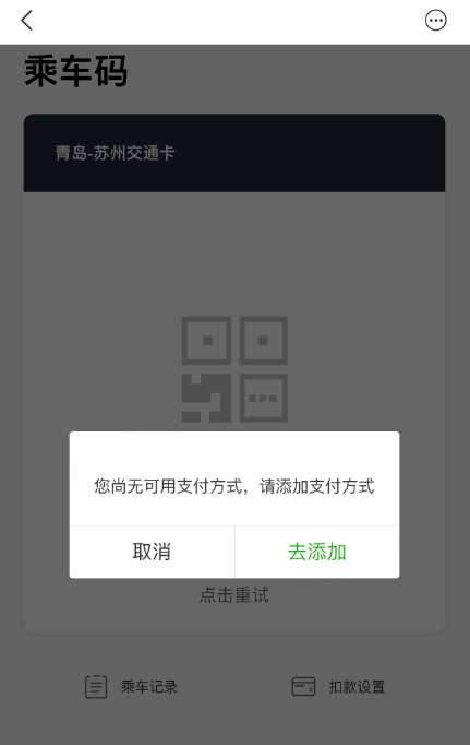●進入乘車碼頁面,如未綁定支付方式,需添加支付方式。開通乘車碼后即可實現(xiàn)使用青島地鐵App在當前城市掃碼過閘(沈陽市目前僅支持沈陽有軌電車)。