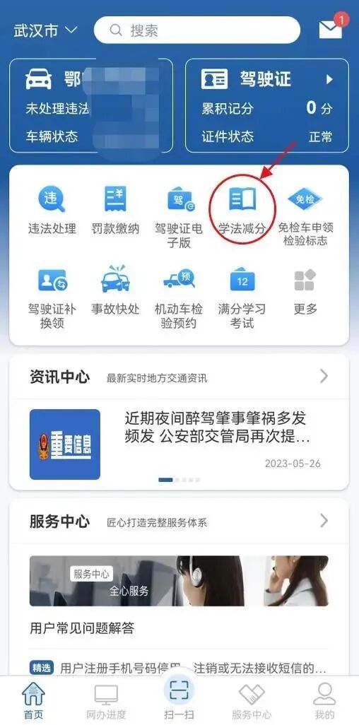 ■用戶登錄“交管12123”手機App,在首頁,點擊“學法減分”按鈕→進入學法減分申請頁面,或者在首頁點擊“更多”→進入業(yè)務中心頁面,在“學習教育業(yè)務”模塊下點擊“學法減分”按鈕→進入學法減分申請頁面→選擇“網(wǎng)上學習考試”,點擊“申請”按鈕。