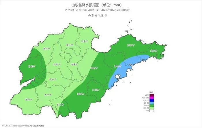 全省累積平均降水量10~20毫米,其中,青島、煙臺、威海、濰坊、棗莊、臨沂和日照有中到大雨(10~30毫米),其他地區(qū)有小到中雨(8~15毫米)。