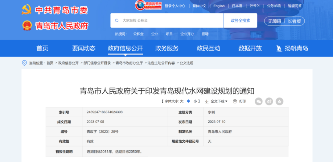 青島市人民政府關(guān)于印發(fā)青島現(xiàn)代水網(wǎng)建設(shè)規(guī)劃的通知