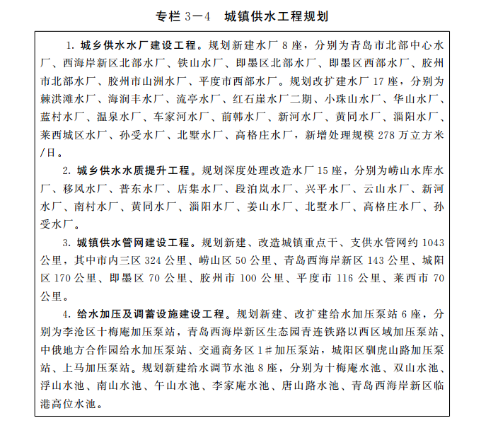 1. 2025年前,重點(diǎn)實(shí)施《青島市“十四五”水務(wù)發(fā)展規(guī)劃》項(xiàng)目和本規(guī)劃的部分重點(diǎn)水源聯(lián)通及輸配水工程、城鄉(xiāng)供水水廠及供水一體化工程、污水提標(biāo)擴(kuò)能工程等。