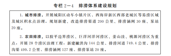 2.科學(xué)實(shí)施農(nóng)田排澇工程。按照分區(qū)防治、系統(tǒng)整治、高低分排、洪澇兼顧的原則,實(shí)施以膠平邊界澇區(qū)、巨洋河洋河澇區(qū)、姜山洼、桃源河澇區(qū)為重點(diǎn)的28個(gè)澇區(qū)治理工程,構(gòu)建農(nóng)田治澇工程體系。