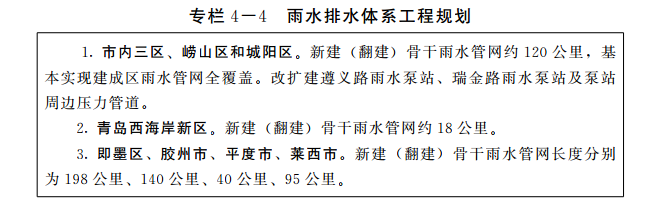 (三)城市雨水排水體系建設(shè)。統(tǒng)籌考慮海綿城市建設(shè)和城市更新要求,采用“綠、灰、管”多措并舉,推進(jìn)綠色源頭徑流削減、灰色管渠過(guò)程蓄排、排水管控提質(zhì)增效,適度提高城市雨水系統(tǒng)設(shè)計(jì)重現(xiàn)期,規(guī)劃新建、改擴(kuò)建骨干雨水管網(wǎng)約611公里,提高雨水系統(tǒng)排水能力。