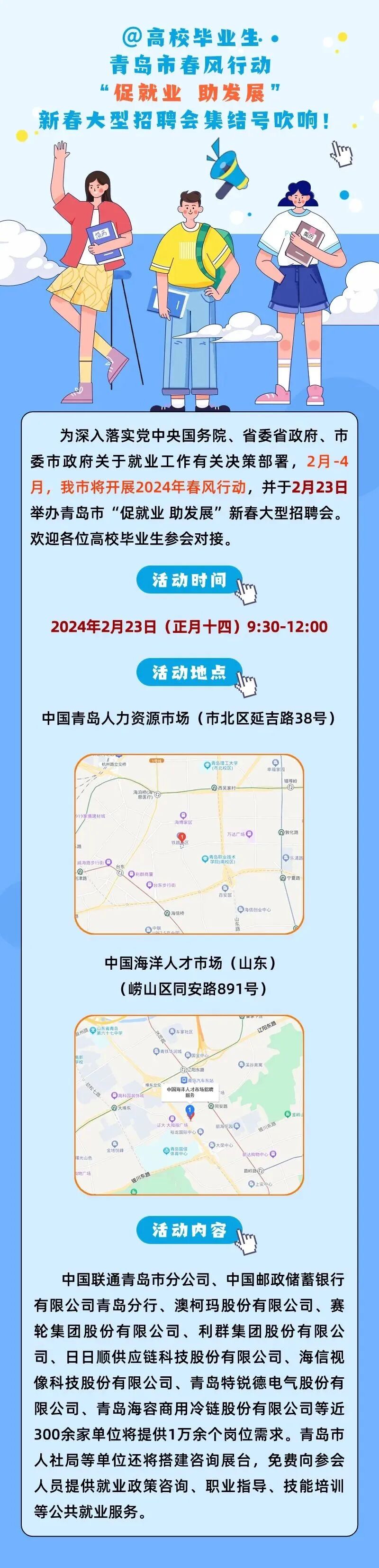 青島市春風(fēng)行動(dòng)“促就業(yè)助發(fā)展”新春大型招聘會(huì)將于2月23日(正月十四)舉行。