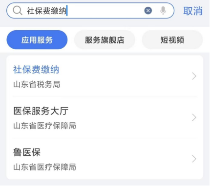 1.打開“愛山東”APP或小程序,首頁搜索“社保費繳納”,點擊進入服務