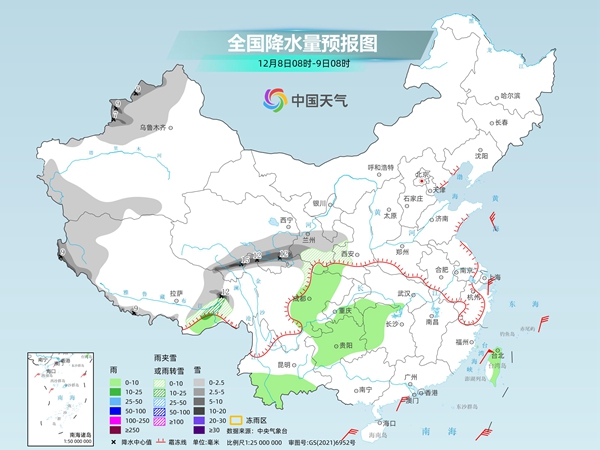 中央氣象臺預計,今天,新疆北部和西南部、西藏南部和東部、青海東南部、甘肅南部、川西高原北部等地部分地區(qū)有小到中雪或雨夾雪,其中,新疆西北部、西藏東部、青海南部、甘肅南部等地部分地區(qū)有大雪,局地暴雪。湖南西部、四川盆地、貴州、云南南部、臺灣島等地部分地區(qū)有小雨。