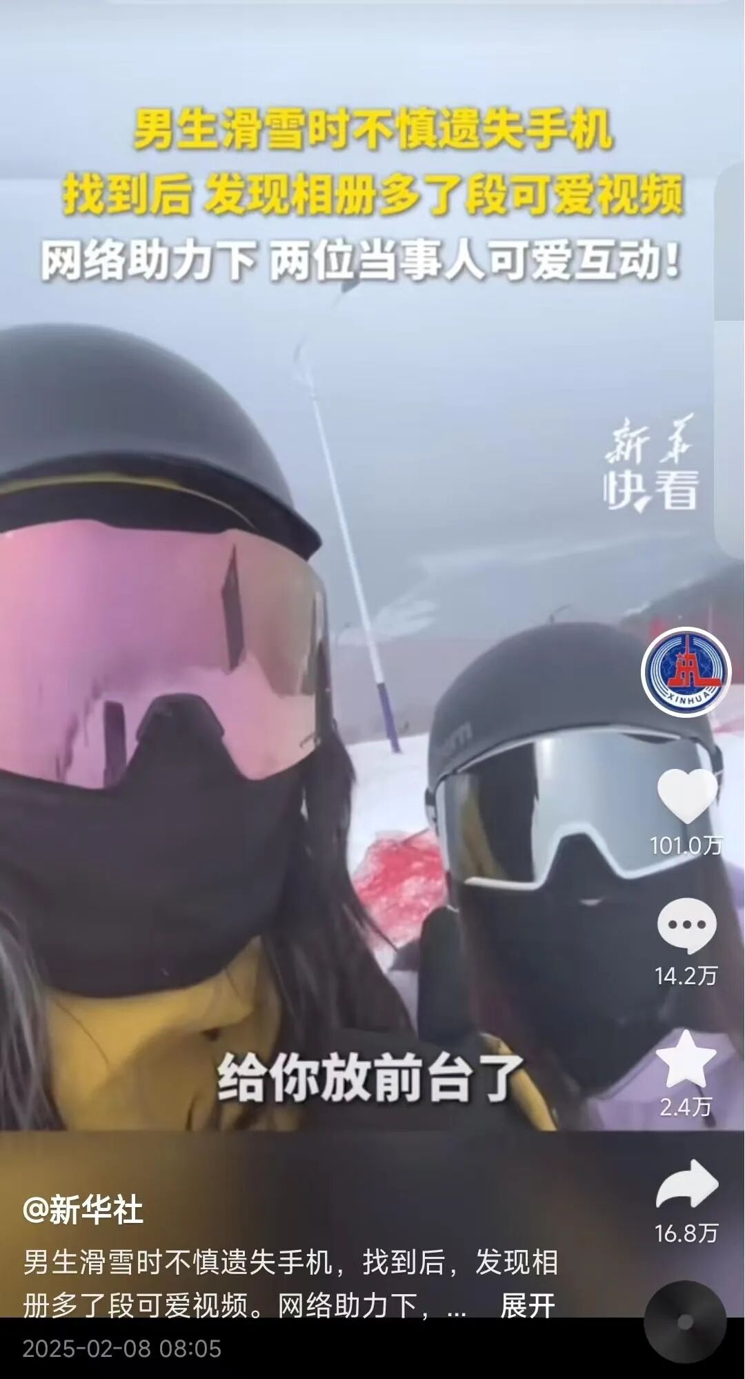 經(jīng)新華社報(bào)道后,各平臺(tái)點(diǎn)贊超百萬。全網(wǎng)見識(shí)了青島年輕人的“幽默式善良”,事情還要從雪道上那部“命懸一線”的手機(jī)說起……