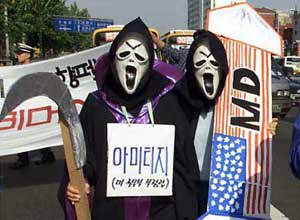 美國副國務卿阿米蒂奇5月9日在漢城會見了韓國總統(tǒng)金大中,游說美國的導彈防御體系(NMD)計劃。據(jù)韓國官員透露,阿米蒂奇向金大中簡要介紹了美國對朝政策審查的進展以及美國的NMD計劃。 就在金大中和阿米蒂奇在總統(tǒng)府進行會晤的同時,數(shù)百名韓國示威群眾身著黑色的喪服,聚集在市中心的公園,高喊“美國佬滾”等反美口號,抗議美國實施NMD計劃。