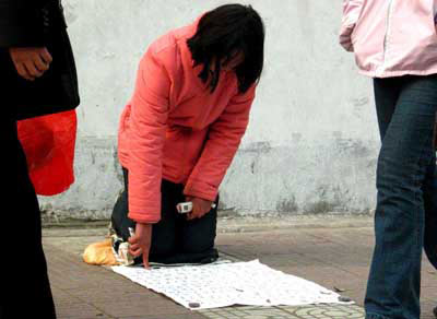 老趙很自豪地告訴記者,他討錢的經(jīng)歷有兩年多了,經(jīng)常四處游蕩,在北京日收入200多一點,但現(xiàn)在人太多了,而且影響首都的形象,呆不長,警察抓的很厲害。到西安要錢最多的是去年十月的黃金周,在大雁塔一帶,每日最高能要到150。