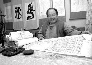 為了督促自己堅(jiān)持下去,并在練字的同時(shí)提高文學(xué)修養(yǎng),他決定抄寫(xiě)巨著《史記》。經(jīng)過(guò)7年時(shí)間,他終于在2003年年底抄完了52萬(wàn)多字的《史記》,寫(xiě)成了寬40厘米、長(zhǎng)150米的長(zhǎng)卷。