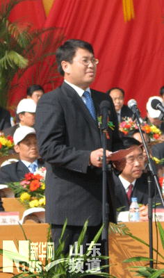 來賓代表、山東大學(xué)校長展?jié)蚯穾煼洞髮W(xué)建校50周年表示祝賀