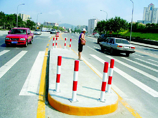 今年在福州北路剛設(shè)立的 二次過路安全島。曹為鵬攝