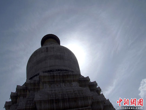 中新網(wǎng)5月23日電 (高峰毅 焦瑾琦) 近日,華北地區(qū)氣溫居高不下。5月21日晚9時(shí)許,山西五臺(tái)山出現(xiàn)了月暈現(xiàn)象,持續(xù)了近一個(gè)小時(shí)。而第二天,即22日上午9時(shí)許,五臺(tái)山上空又出現(xiàn)了日暈奇觀,,并持續(xù)了兩個(gè)多小時(shí)。這兩種暈的出現(xiàn)時(shí)間差不足12小時(shí),著實(shí)令人稱(chēng)奇。