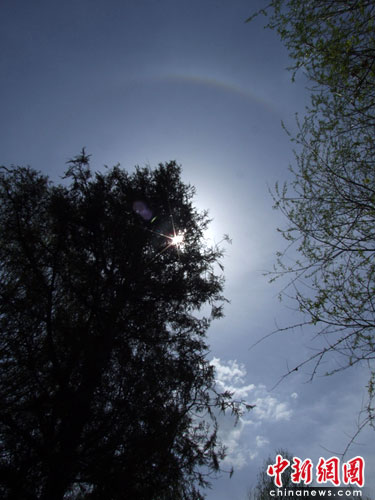 暈是一種天文現(xiàn)象。在太陽或月亮周圍出現(xiàn)一道光圈,色彩艷麗,人們叫它“風(fēng)圈”,氣象上稱暈。出現(xiàn)在太陽周圍的光圈叫日暈,出現(xiàn)在月亮周圍的光圈叫月暈。它是由于日、月光線通過云層時,受到冰晶的折射或反射而形成的。而這種冰晶結(jié)構(gòu)的云常常是冷暖空氣相遇而生成的云層,以后云層增厚,發(fā)展成雨層云,所以暈是風(fēng)雨將臨的征兆。 民間一般有“日暈三更雨,月暈午時風(fēng)”的說法。