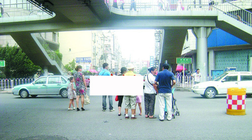 ????7月21日9點(diǎn)30分,記者來到位于威海路的過街天橋,天橋連接的是四個(gè)路口的人行橫道。記者做了一下統(tǒng)計(jì):從9點(diǎn)37分到9點(diǎn)47分的10分鐘里,通過天橋的市民大約有140人,而選擇直接橫穿馬路的市民有150人之多,5成市民不走天橋,什么原因呢?記者從幾位市民口中得知,他們也知道走天橋安全,但實(shí)際情況讓他們也很無奈。