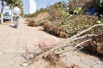 ????昨天上午10時左右,記者趕到位于世紀(jì)新村東面的北京路西側(cè)施工現(xiàn)場看到,被砍倒的松柏樹頭已經(jīng)被運走,幾名園林工人正在挖樹墩子,有一些碗口粗的松柏樹墩子還立在地里,記者看到,僅深圳路以南就被砍倒近百棵松柏。在深圳路北側(cè),還有一些茶碗口粗的觀賞樹也挨了刀躺在地上,樹葉已經(jīng)開始干枯?!斑@些搞綠化的竟然明目張膽地毀樹!我看不過,上去制止他們,他們完全不當(dāng)回事,還理直氣壯地跟我說,上面就是這么安排的,他們是奉命行事,然后接著砍,真是太氣人了?!奔易∈兰o(jì)新村的陳女士告訴記者,這些松柏還是世紀(jì)新村剛建成后栽上的,已經(jīng)有十幾年的樹齡了,就這么砍倒太可惜了。 解釋 現(xiàn)場人員稱移樹成本高 “現(xiàn)在政府部門都很重視綠化,這些園林職工卻在市區(qū)無所顧忌地砍樹,我們想知道到底是咋回事?”陳女士對記者說。昨天上午,記者就此事采訪了膠南市城建局園林處,一位姓譚的工作人員告訴記者,這些松柏樹靠近圍墻生長,生命力已經(jīng)不太強了,而且那些松柏所處的位置不好,很難給樹根挖出一個土球,這樣即便移植到別的地方也很難存活,所以才砍掉。而施工現(xiàn)場一位李姓負(fù)責(zé)人說話更為直接,“這些松柏樹如果移植的話,花費的成本太高了,還不如直接砍掉劃算!”。