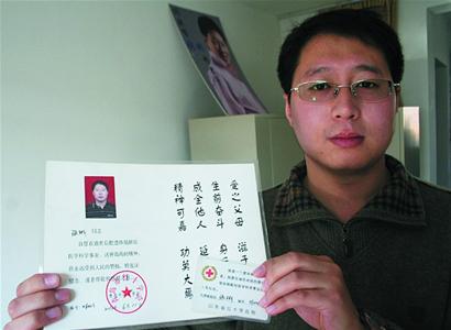 ????志愿捐獻(xiàn)器官,在張彬看來原本是一件私人的事情,卻因?yàn)橐粡埍砀裥孤读颂鞕C(jī)。今年11月,張彬申請(qǐng)一項(xiàng)獎(jiǎng)學(xué)金,填寫獲獎(jiǎng)情況時(shí),寫了一個(gè)紅十字會(huì)頒發(fā)的榮譽(yù)證書。這是什么證書?在輔導(dǎo)員老師賈強(qiáng)的追問下,他這才講出了實(shí)情。