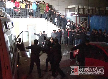 ????隨后又有幾位年輕男子朝“紅色馬六”踢去,還有人用拳頭砸車的風擋玻璃:“你趕緊從車里出來,大家都等著你道歉呢?!闭驹谏虉龆菄鷻谟^看的市民朝“紅色馬六”轎車扔雪球,還有人扔磚頭、煙頭,民警忙著不斷勸大家不要情緒激動,一位民警頭部受創(chuàng)流血。