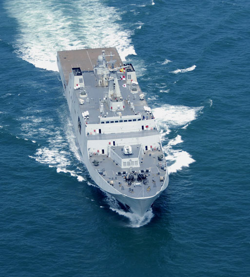 資料圖:中國(guó)海軍艦艇編隊(duì)首訪巴林,圖為“昆侖山”艦駛?cè)臌溂{麥港。記者尹航 攝