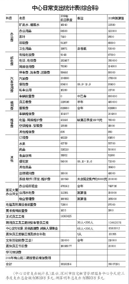 網(wǎng)友曝光的深圳市住宅租賃管理服務中心日常支出清單