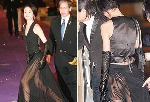 第25屆香港電影金像獎(jiǎng)?lì)C獎(jiǎng)典禮紅毯上,周迅以一襲黑色禮服的周迅剛踏上星光大道時(shí),現(xiàn)場(chǎng)就發(fā)出一片尖叫聲,原來(lái)周迅的禮服是透明裝,雖然瘦小但不失苗條的身材在透視裝下若隱若現(xiàn),著裝尺度較以往大膽許多,非常性感。