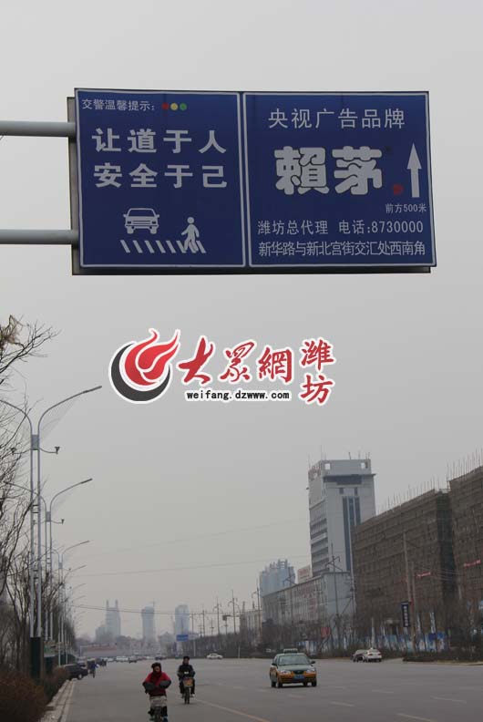 新華路與北宮東街交叉路口處的一塊道路指示牌,背面并無任何廣告 ????原本屬于公益目的的道路指示牌卻悄然“變臉”,放上了刺眼的白酒廣告。近日,有網(wǎng)友致電大眾網(wǎng)濰坊站稱,濰坊部分道路指示牌竟然放置了密州春、賴茅等白酒的廣告,頗具諷刺意味的是,有的白酒廣告恰恰和交警提示的“開車不喝酒”并排放在一起。在屬于交警的道路指示牌上出現(xiàn)白酒廣告,著實讓人不解。記者調(diào)查發(fā)現(xiàn),確有其事。 ????“道路指示牌上出現(xiàn)了白酒廣告,這不是在誘導(dǎo)駕駛員喝酒嗎?”2月29日,網(wǎng)友王先生致電大眾網(wǎng)濰坊站稱,其當(dāng)日下午駕車路過城區(qū)北海路與新華路之間的北宮東街路段時,竟然發(fā)現(xiàn)豎立在道路上方的道路指示牌背面竟然有賴茅酒的廣告。 ????根據(jù)王先生提供的線索,記者剛到北海路與北宮東街交叉路口處就看到了上述那塊刺眼的白酒廣告。記者注意到,“央視廣告品牌賴茅”的廣告語與“讓道于人,安全于己”的交警溫馨提示各自占據(jù)了這塊道路指示牌背面一半的面積。就在與之不遠(yuǎn)的北宮東街與新華路路口交叉口處,記者亦在北宮東街北側(cè)的道路指示牌背面上發(fā)現(xiàn)了同樣的廣告。 ????記者注意到,刺眼的白酒廣告不僅在上述路段出現(xiàn)。當(dāng)日,記者在濰州路與四平路之間的勝利東街上也發(fā)現(xiàn)了一塊放置在道路指示牌背面的白酒廣告。更為讓路人感到不解的是,“開車不喝酒,喝酒不開車”的交警提示竟與濰坊當(dāng)?shù)匾患颐麨椤懊苤荽骸钡陌拙茝V告放置在了一起。 ????對于白酒廣告“堂而皇之”出現(xiàn)在道路指示牌背面一事,王先生表示十分反感,“眾所周知,道路指示牌具有公益目的性質(zhì),主要為司機(jī)朋友和路人提示道路,但刺眼的白酒廣告,與交警要求的嚴(yán)謹(jǐn)酒駕有所背離?!?/p> ????“道路指示牌應(yīng)該是交警設(shè)置的,目的是便民,但現(xiàn)在白酒廣告堂而皇之地登上了指示牌,有交警幫助賣酒之嫌。一邊抓酒駕,一邊幫白酒打廣告,交警‘跑偏’了?!?月29日,一位路徑北宮東街的市民如是說。 ????3月1日,針對濰坊城區(qū)交通指示牌出現(xiàn)白酒廣告一事,記者撥打了濰坊交警支隊機(jī)關(guān)值班電話,當(dāng)獲悉記者采訪意圖后,值班人員表示需詢問支隊交管科,并將該科電話告知了記者。不過,當(dāng)記者撥通該支隊交管科電話后,得到的答復(fù)卻是“不清楚”。 ????為獲知白酒廣告為何出現(xiàn)在道路指示牌背面,記者最后撥通了濰坊交警支隊宣教科的電話。在獲悉網(wǎng)友疑問后,宣教科一名負(fù)責(zé)人表示,待將事情調(diào)查清楚后,會給網(wǎng)友一個回復(fù)。(記者 都鎮(zhèn)強(qiáng)) |