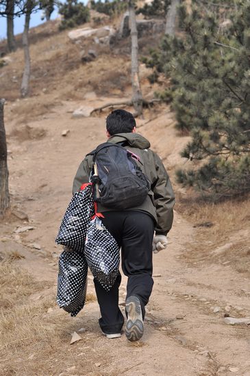 ![]() ![]() ![]() 2004年,王德洋到浮山晨練時(shí),發(fā)現(xiàn)尚未開發(fā)的浮山吸引了許多島城市民,逐漸成為人們健身游玩的好去處。同時(shí),發(fā)現(xiàn)市民在登山游玩野餐時(shí)用過的垃圾袋、礦泉水瓶等大量廢棄物,留在樹叢、石縫中,掛在樹枝上,污染了浮山的自然環(huán)境,與島城優(yōu)美的景觀形成了鮮明的反差。 王德洋說,自己爬山是為了放松心情鍛煉身體,可一看到山上樹上的塑料袋、礦泉水瓶、廢紙,好心情立馬就變糟糕了,“挺美的一個(gè)地方,就這么讓垃圾給毀了。 ”從此,王德洋就把撿垃圾當(dāng)成了比爬山更重要的事。 以后,每次登山晨練時(shí),他都帶上裝垃圾的袋子,隨時(shí)撿拾游客丟棄的雜物,一干就是七年。七年間,王德洋至少上山千余次,撿的多是塑料袋、礦泉水瓶、玻璃瓶、方便面盒等不可降解的垃圾,帶下山的垃圾至少有三四噸之多。 |