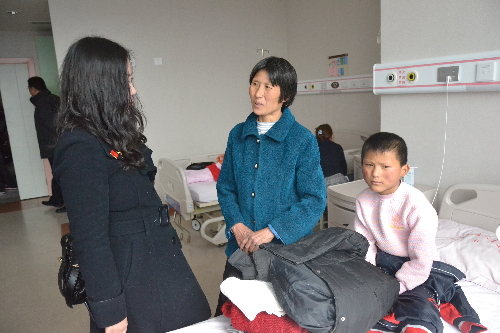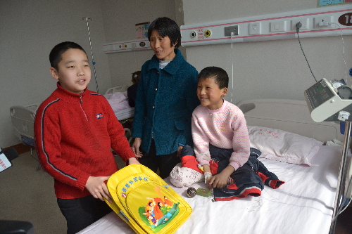 醫(yī)生為大家講解慶偉的病情 “往事如歌”團隊里的小朋友,也為慶偉送上一份愛心 “獅友會車友會”的愛心網(wǎng)友為慶偉母子送去衣物 在得知小慶偉的家庭條件后,青島市婦兒醫(yī)院立即幫他申請了愛心基金,資助1萬元,幫助他手術、康復。如今,小慶偉已經(jīng)于周三手術成功,臉色的紫色明顯消褪,要不了多久就可以出院,和正常孩子一樣生活。 小慶偉的不幸,打動了很多青島網(wǎng)友。聽了他的故事,大家紛紛伸出援助之手。作為“學生小記者團”愛心團隊的代表,青島五十一中的9位同學,還特意給慶偉買了書包、文具,希望他以后能夠好好學習,報答父母。在“往事如歌”愛心網(wǎng)友中,也有慶偉的同齡人,劉紫荊就是其中一位,她和小伙伴為慶偉送去了小泥人和俄羅斯套娃,希望慶偉開開心心每一天。 此外,來自“獅友會車友會”的愛心網(wǎng)友,還為慶偉和媽媽送去了衣物,希望他們能感受到青島網(wǎng)友的愛心與溫暖,早日康復。(記者 王安) |