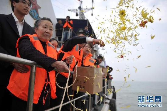 3月30日,80歲的陳美鳳老人準(zhǔn)備將逝去丈夫的骨灰盒放入大海。當(dāng)日,浙江溫州市首次骨灰聯(lián)合海葬在甌江口海岸線6海里以外的東海海域舉行,15位逝者家屬報(bào)名參加此次海葬。今后溫州市民政部門(mén)將在每年3至4月份擇日出海舉行一次海葬,全年受理申請(qǐng)。近年來(lái),溫州市大力推行殯葬改革,與海葬一樣,樹(shù)葬、花壇葬、草坪葬等眾多的生態(tài)、節(jié)地葬式,已被越來(lái)越多的逝者親屬接受(新華社記者 黃宗治 攝)