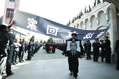 今年18歲的小高抱著父親的遺像,輕聲說了26遍“我不哭”;200余名公安干警排列在殯儀館青松大道兩旁,聲淚俱下地喊著他的名字,卻再也喚不醒好同事——享年45歲的市南公安分局刑偵大隊(duì)副大隊(duì)長高明顯。他為破案遠(yuǎn)赴多地連續(xù)工作30多天,過度勞累誘發(fā)心肌梗塞而離世。昨日下午,親人和戰(zhàn)友含淚迎接高明顯回家。