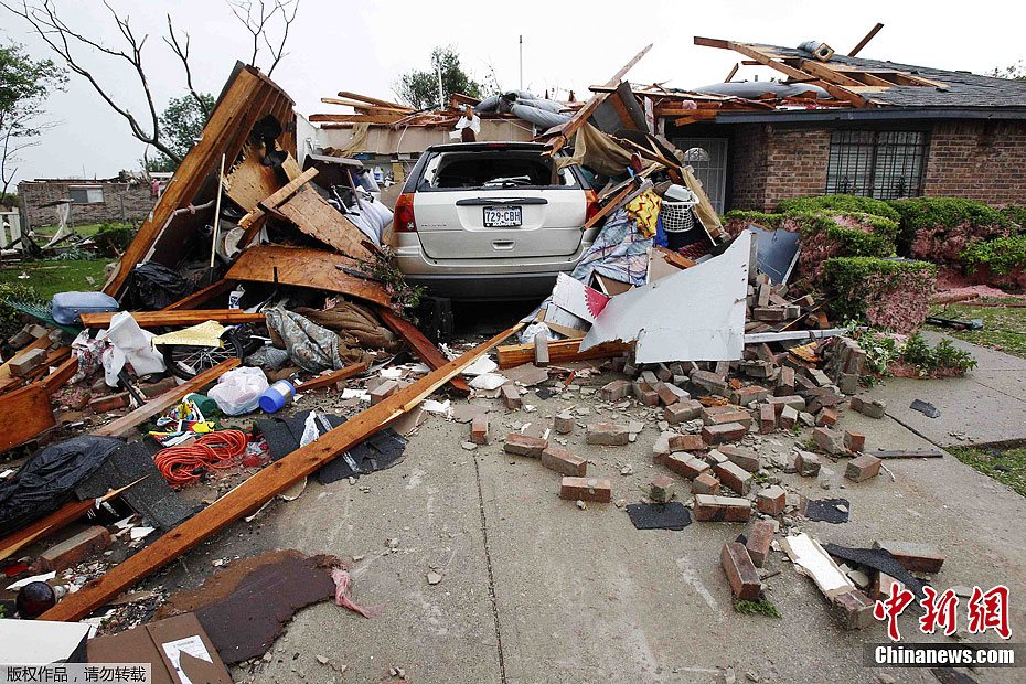當(dāng)?shù)貢r間4月3日下午,兩個破壞力強大的龍卷風(fēng)席卷了美國中南部得克薩斯州的達(dá)拉斯和沃斯堡都市地區(qū),龍卷風(fēng)中心所過之處將卡車卷到空中、撕毀民居房頂,使拖拉機和重型掛車散落到高速公路和停車場,目前官方尚無人員傷亡報告。圖為得克薩斯州受到龍卷風(fēng)襲擊的地區(qū)。