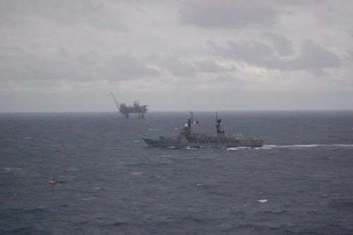 菲律賓海軍派新購(gòu)入的美制二手軍艦進(jìn)入我南海九段線內(nèi)菲方石油鉆井平臺(tái)