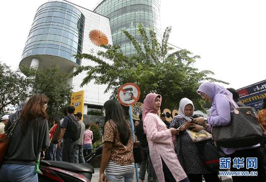 4月11日,在印度尼西亞蘇門答臘島的棉蘭,人們在一家購物中心外避險。印尼地震監(jiān)測部門公布,蘇門答臘附近海域11日下午發(fā)生8.5級強震,地震監(jiān)測機構(gòu)已發(fā)布海嘯預(yù)警。新華社/美聯(lián)