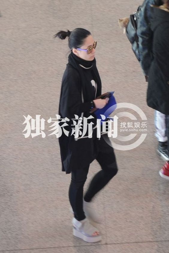 阿嬌素顏機(jī)場(chǎng)ATM排隊(duì)取錢(qián) 皮膚黯啞風(fēng)光不再(圖)