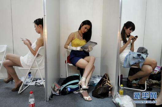 車模臺前光鮮亮麗臺下心酸:一站就是一天(圖)