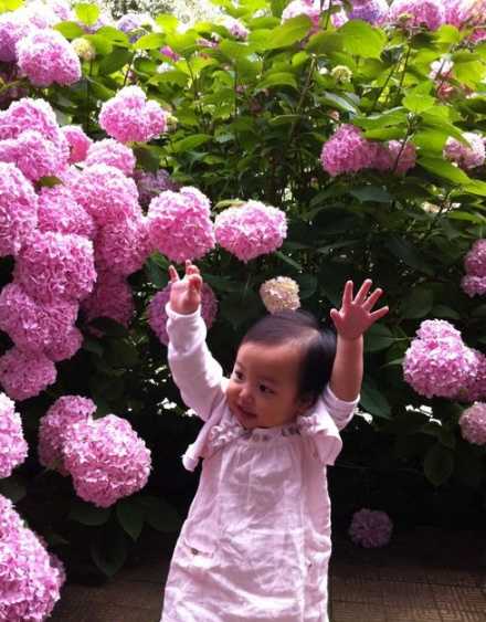 曝趙薇女兒吐舌賣萌照 看報摘花似文藝青年(組圖)