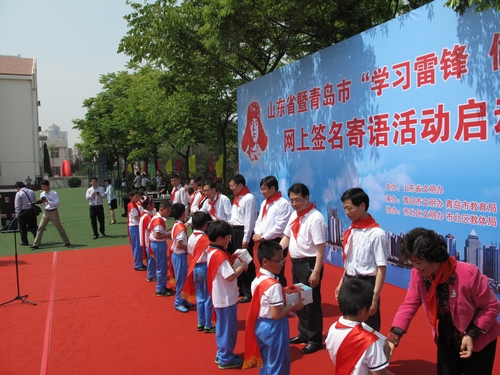 ??? 青島新聞網(wǎng)5月25日訊?今日,“學(xué)習(xí)雷鋒,做美德少年”網(wǎng)上簽名寄語活動啟動儀式在青島市市北區(qū)福州路小學(xué)舉行。中央文明辦吳向東副局長、省文明辦王紅勇副主任、市人大副主任鄒川寧、青島市委宣傳部副部長、市文明辦主任王溱同志參加了此次啟動儀式。