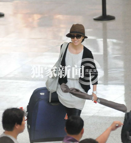 袁泉現(xiàn)身機場遭陌生男子搭訕 友人慌忙擋駕(組圖)