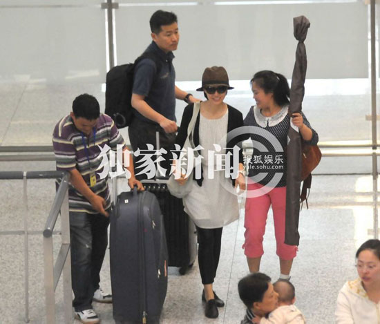 袁泉現(xiàn)身機(jī)場