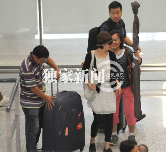 袁泉現(xiàn)身機場遭陌生男子搭訕 友人慌忙擋駕(組圖)