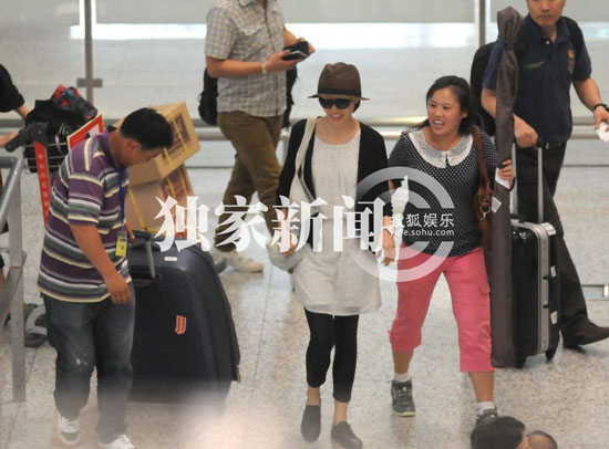 袁泉現(xiàn)身機(jī)場(chǎng)