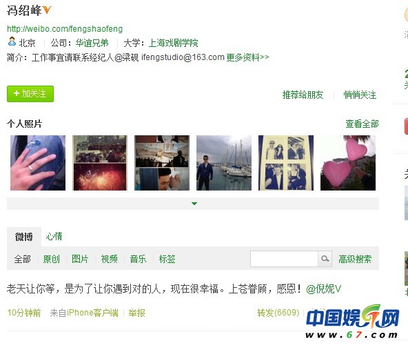 隨后馮紹峰突然在微博上宣稱已遇到對(duì)的人,并稱現(xiàn)在很幸福,文末還@倪妮,大方公開與倪妮戀情,“老天讓你等,是為了讓你遇到對(duì)的人,現(xiàn)在很幸福。上蒼眷顧,感恩!@倪妮”。