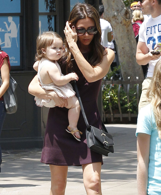 貝嫂維多利亞攜子女出行 小七肥嘟嘟可愛