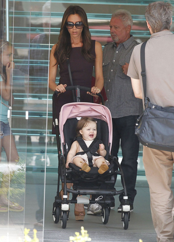 貝嫂維多利亞攜子女出行 小七肥嘟嘟可愛