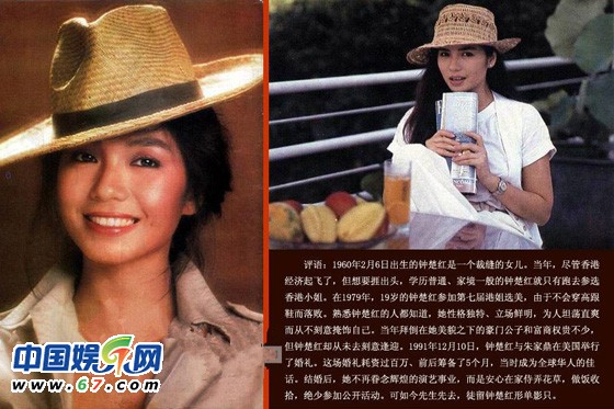 1979年,鐘楚紅參選香港小姐,在得知進(jìn)入決賽時喜極而泣,令人印象深刻。賽后,鐘楚紅在無線試鏡失敗,卻得到電影公司老板垂青,踏足影壇。