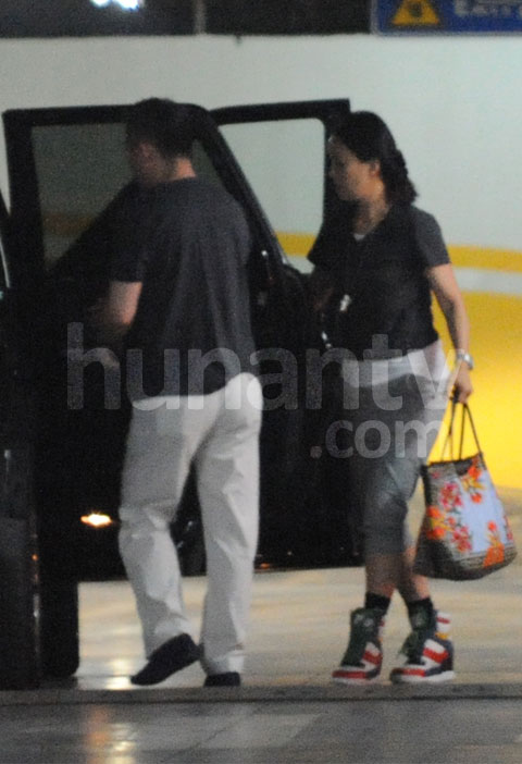 楊冪劉愷威情侶裝現(xiàn)身機(jī)場(chǎng) 楊冪摘墨鏡安檢素顏憔悴(圖)